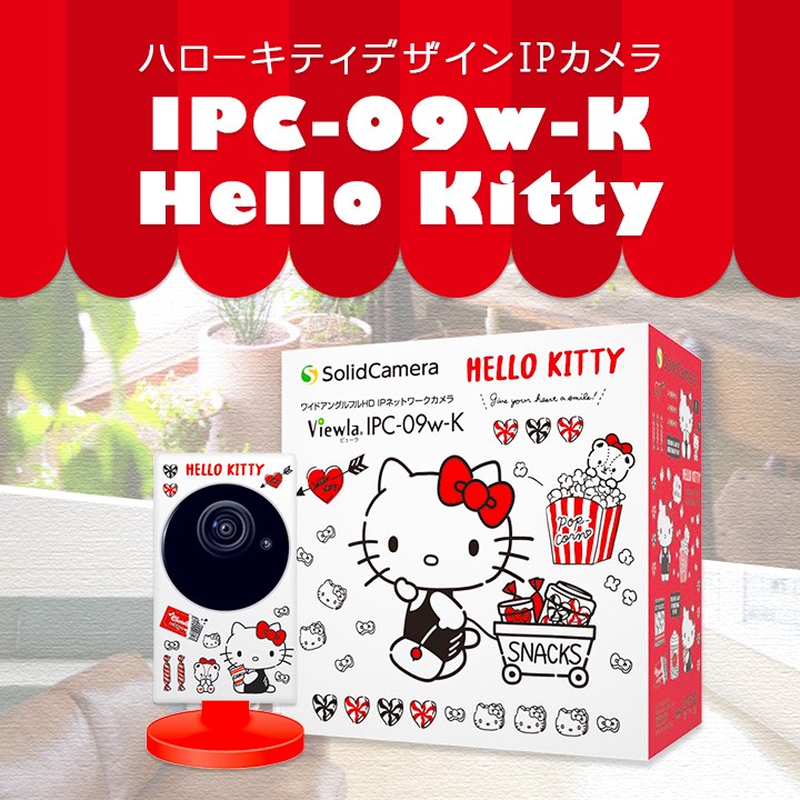 ソリッドの見守りカメラ「IPC-09w」にハローキティをデザインした限定版が登場♪ かわいらしいデザインのカメラを置いておけば、ご家族やペットの安全を外出先から確認できるよ!