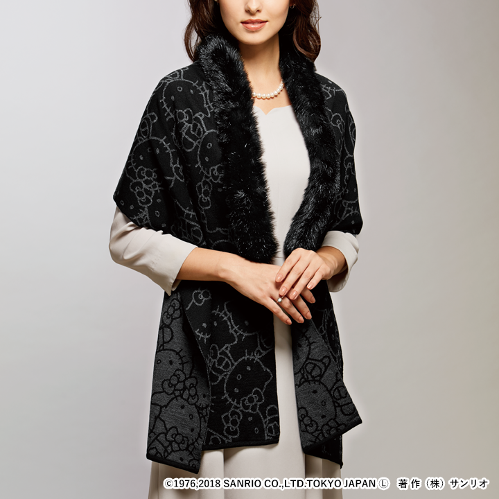 全面に編み込まれたハローキティが笑顔と温もりを与えてくれるウール100%の上質な大人のストールが登場したよ。ふわふわのエコファーが顔周りを飾ってくれて、このうえなくキュートでなおかつゴージャスにも見えるよね!