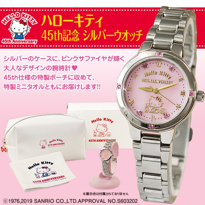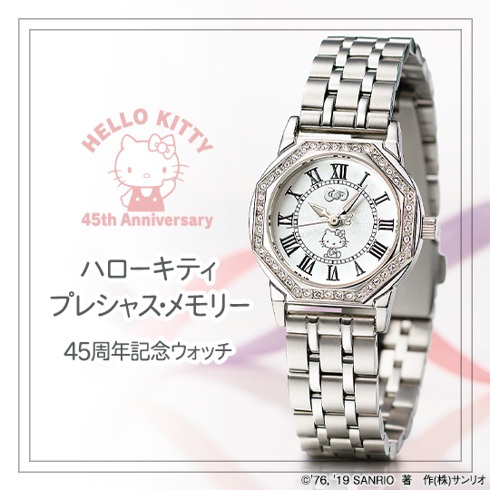 皆さまこんにちは。今日はハローキティ45周年を記念した大人の女性向けの腕時計の紹介だよ。
