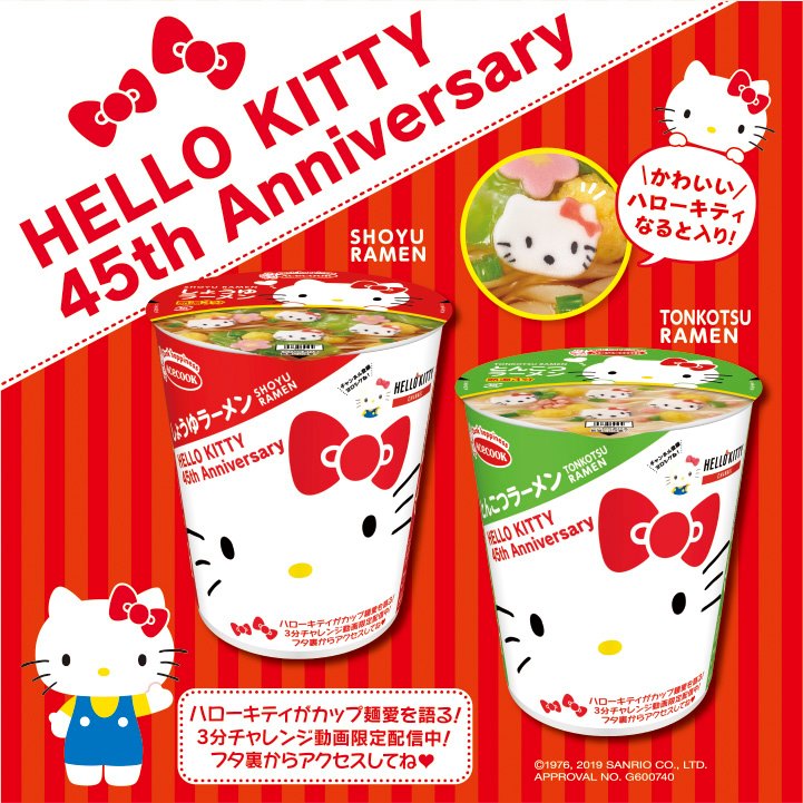 皆さまこんにちは。今日はキティのアニバーサリーカップ麺の紹介だよ。
