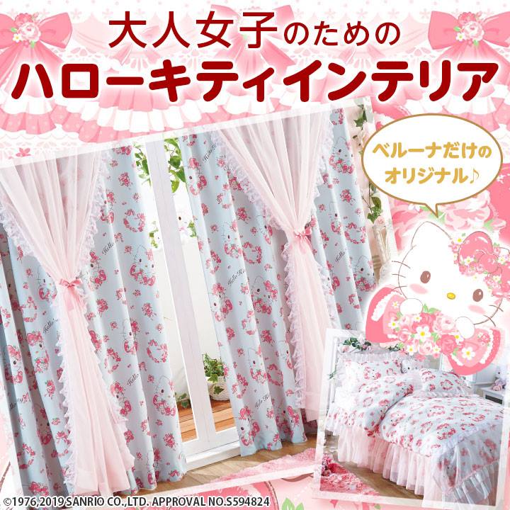 ベルーナから限定オリジナルのインテリアアイテムが登場。 ふんわり水彩タッチのキティちゃんとローズの柄が可愛いカーテンやカバーリングでお部屋をコーディネートしよう!