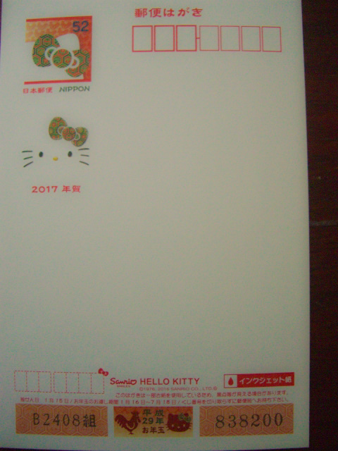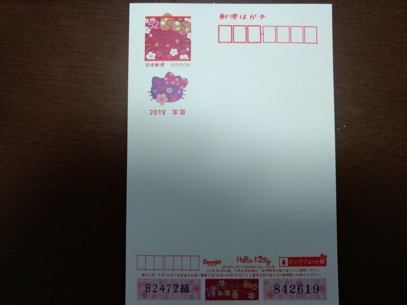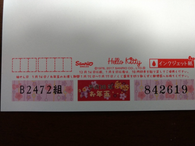 皆さまこんにちは。今年もキティの年賀はがきを買ったよ!