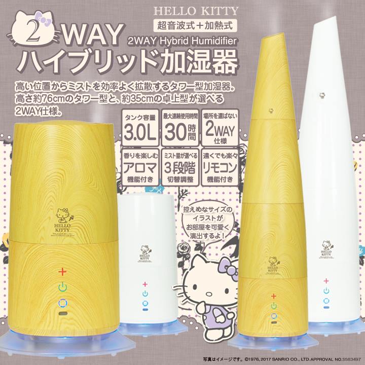 今回のキティの加湿器は2種類あって、タワー型と卓上型だよ。