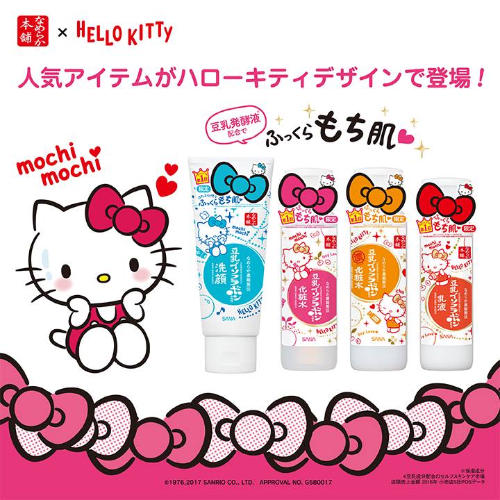 イソフラボン含有の豆乳発酵液配合スキンケアブランド「なめらか本舗」から、『ハローキティ』をデザインしたアイテムが数量限定で登場したよ!