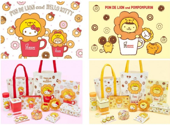 今までに何度かミスドとコラボしているキティですが、今度はポムポムプリンと共に“ポン・デ・ライオン”に扮しています。 デザインは、ポン・デ・ライオンに扮したキャラクターがミスドのマグカップに入ったユニークなもの。