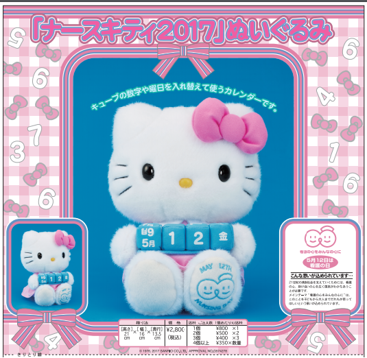 このぬいぐるみは5月12日の看護の日グッズの一環として発売されているもので、中にはずっと使える万年カレンダーがついているよ。